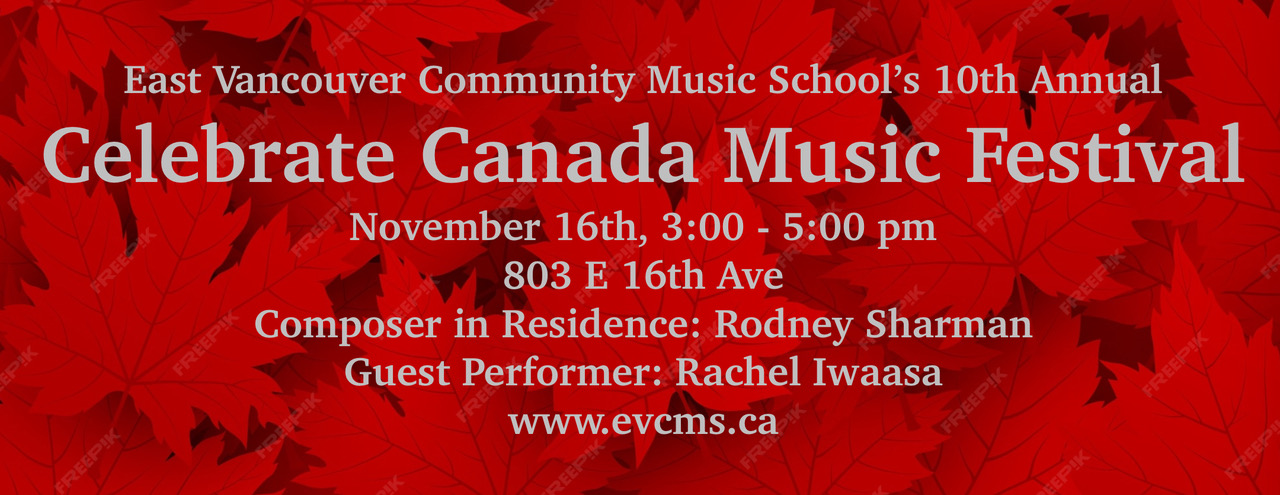 The East Vancouver Community Music School was founded with a mandate of nurturing our musical community, building connections between music students and neighbours, of supporting music teachers, composers, performers, and the web of connections that makes up the musical ecosystem of Vancouver. Every year since 2015 the non-profit school has hosted a “Celebrate Canada Music Festival” as part of Canada Music Week, and this year is their 10th anniversary!